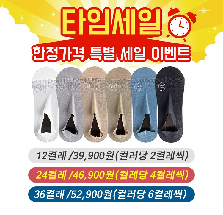 【24컬레 /49,900원】서울대 연구소가 개발한 양말, 24시간 흡한·항균(99.8%)으로 발 땀, 냄새, 무좀까지 해결! 듀폰社의 Cool Max 소재로 체감 온도 5℃ 즉각 하락. 은 이온, 티트리 오일, 향기 캡슐 함유로 일주일 갈아 신지 않아도 냄새 걱정 없음.